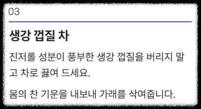 - ✅ "미지근한 소금물 가글": 40대 이OO님 - "목 염증 가라앉히는 데는 이게 1등입니다."