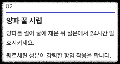 ※ 꿀팁: 90도 이상 가열 시 도라지의 사포닌 성분이 3배 활성화됩니다! - 양파 꿀 시럽: 양파를 썰어 꿀에 재운 뒤 실온에서 24시간 발효시키세요. 퀘르세틴 성분이 강력한 항염 작용을 합니다.