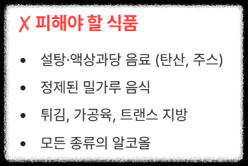 | 커피 (하루 2잔 이내의 아메리카노) | 설탕, 액상과당이 포함된 음료 (탄산, 주스) |