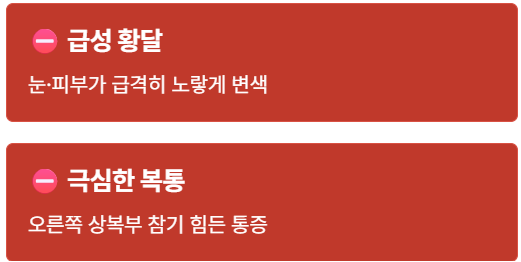 - ⛔ 눈과 피부가 급격히 노랗게 변하는 황달이 발생했을 때.