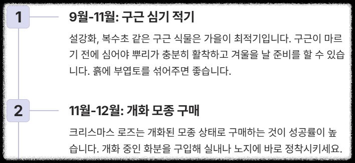 - 크리스마스 로즈: 개화된 모종 상태로 구매하는 것이 성공률이 높습니다.