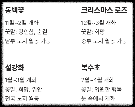 2. 꽃말이 전하는 겨울의 희망 메시지 📝