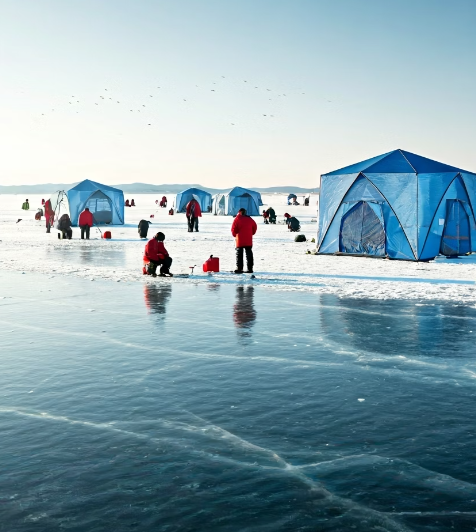 **평창 송어축제(1월 3일 개막 예정)와 화천 산천어축제**는 얼음낚시 구역이 넓지만, 얼음이 얼기 시작하는 개장 직후나 아침 일찍 가야 명당을 잡을 수 있다는 점, 꼭 기억하세요! 텐트 낚시 구역은 사전 예약이 필수입니다.