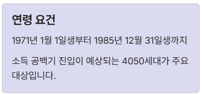 지원 대상은 **1971년 1월 1일생부터 1985년 12월 31일생까지**의 경남도민, 즉 **주요 소득 공백기 진입이 예상되는 4050 세대**를 핵심 타겟으로 합니다. 또한 소득 기준이 있어요. 2024년 기준 연소득 금액이 **93,524,227원 이하**여야 하는데요. 이 금액은 보건복지부 고시 기준을 활용하며, 2026년 4차 모집 대상입니다.