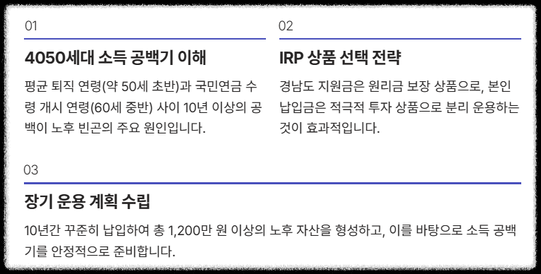 4. 소득 공백기 극복 전략: IRP와 연계 활용 가이드 💡