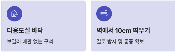 - 다용도실 바닥: 보일러 배관이 지나지 않는 다용도실 구석 바닥에 보관합니다.