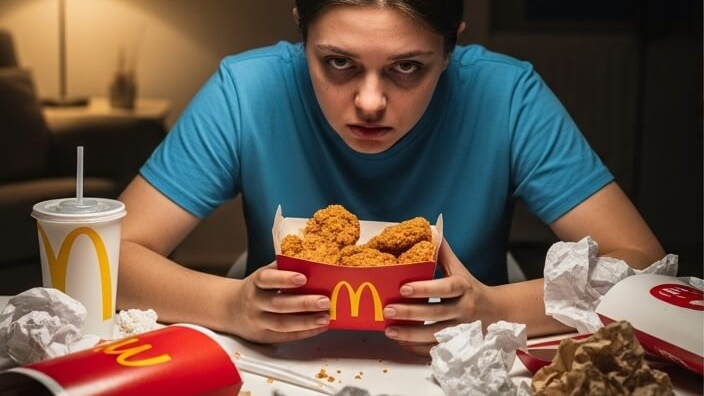 3. 초가공식품: 편의점 햄버거, 소시지, 과자 (매우 위험 - LDL 및 염증 폭증 주범)