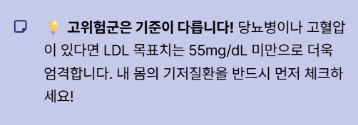 *체크 항목이 2개 이상이라면 더 적극적인 LDL 관리가 필요합니다.