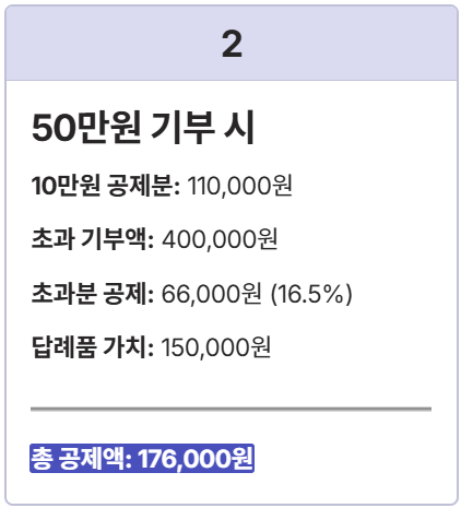 📝 사례 2: 50만 원 기부 시 세액 공제액