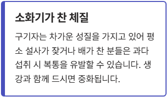 - 소화기가 찬 체질: 구기자는 차가운 성질을 가지고 있어 평소 설사가 잦거나 배가 찬 분들은 과다 섭취 시 복통을 유발할 수 있습니다.