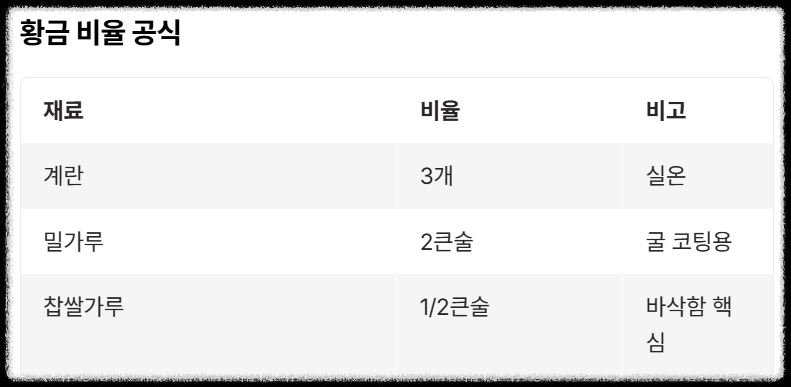겉바속촉 굴전의 비밀: 황금 반죽 비율과 재료 팁 📝