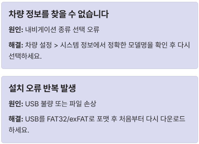 설치 중에는 화면이 여러 번 깜빡거리거나 잠시 먹통이 될 수 있는데, 이건 정상적인 과정이니 당황하지 마시고 기다려주세요! 완료 후 내비 설정에서 최신 버전을 확인하면 끝입니다. 👍