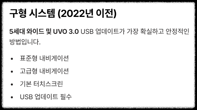 2023년 이후 출시된 신형 모델에 탑재되는 **ccNC (Connected Car Navigation Cockpit)** 시스템은 OTA(Over The Air) 무선 업데이트를 지원합니다. 만약 여러분의 차량이 OTA를 지원한다면, 사실 굳이 USB 업데이트가 필요 없을 수도 있어요. 하지만 대규모 업데이트나 시스템 초기화 시에는 여전히 **USB 업데이트**가 가장 확실하고 안정적인 **기아 내비 업데이트 방법**입니다. 내 차종을 먼저 확인해 보세요!