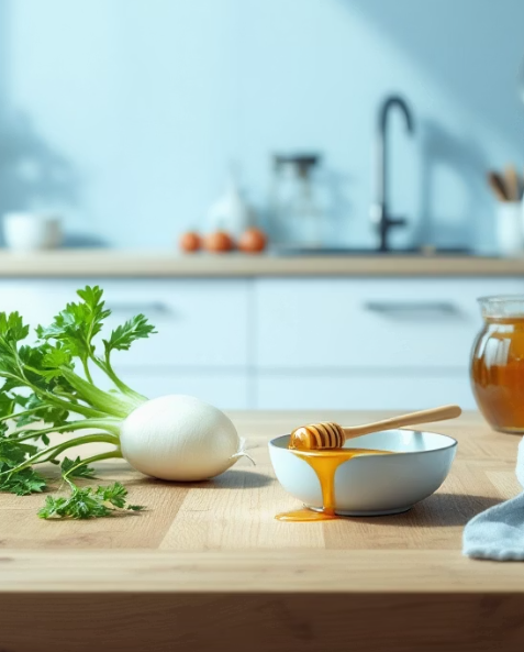 - 재료 준비: 깨끗이 씻은 무 500g(약 1개)과 천연 꿀 300g을 준비합니다.