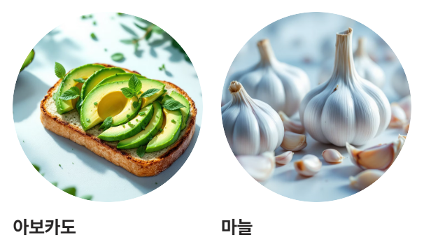 - 마늘: 알리신 성분이 혈관을 확장하고 혈전을 방지. 생마늘 1~2쪽 또는 익혀서 매일 섭취.