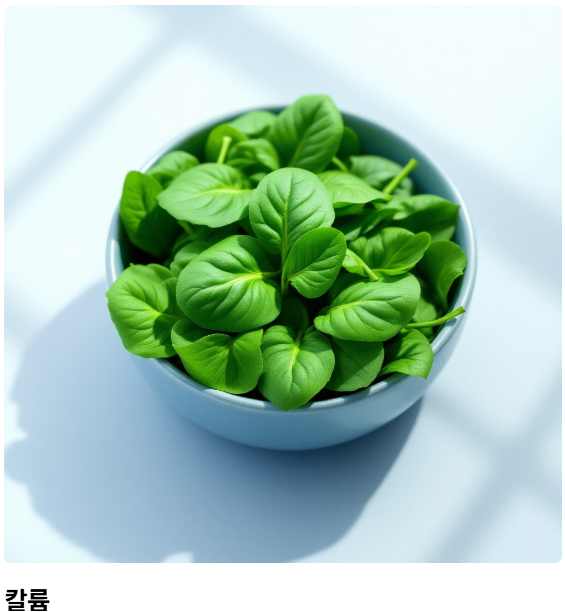 - 시금치/케일: 칼륨, 엽산, 루테인(항산화) 풍부. 스무디나 나물로 매일 섭취.