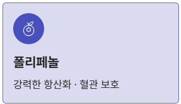 - 폴리페놀 & 안토시아닌 (강력한 항산화): 이들은 활성산소를 제거하고 혈관 내피세포의 손상을 막아줍니다. 특히 블루베리, 아사이베리 등 베리류와 다크 초콜릿에 풍부합니다. 항산화식품은 혈관 노화를 막는 최고의 방패입니다.