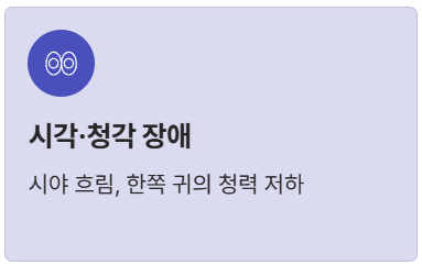 - 3. 시각 및 청각 장애: 시야가 흐려지거나(시신경 교차로 주변), 한쪽 귀가 잘 들리지 않는 경우(전정신경초종 등).