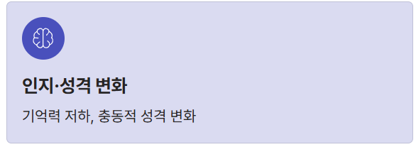 - 4. 인지 및 성격 변화: 기억력 저하, 집중력 상실, 혹은 평소와 다른 충동적이거나 공격적인 성격 변화(전두엽 종양).