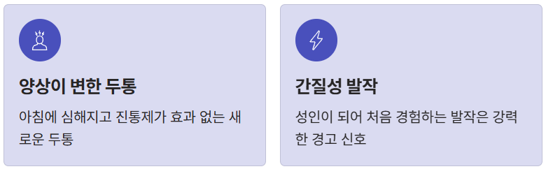 - 새로운 두통 패턴: 단순히 아픈 정도가 아니라, 아침에 심하고 양상이 변하는 뇌종양 두통에 집중해야 합니다.