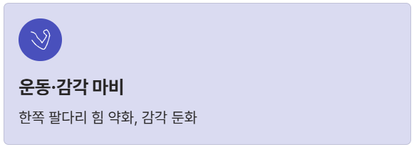 - 5. 운동/감각 마비: 몸의 한쪽(편측) 팔다리의 힘이 약해지거나(운동 피질 주변), 감각이 둔해지는 증상(감각 피질 주변).