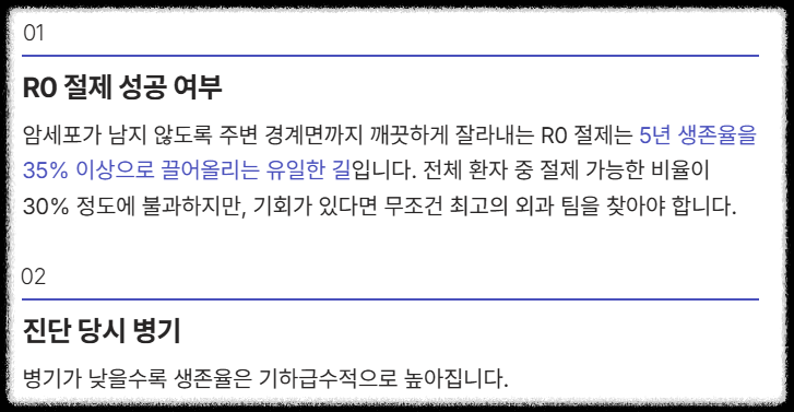 2. 생존율을 결정하는 4대 요인, 특히 'R0 절제'의 기적 ✨