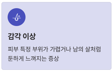 - 감각 이상: 피부 특정 부위가 가렵거나 남의 살처럼 둔하게 느껴집니다.