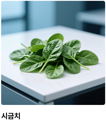 | 7위 | 시금치 | 비타민K2 (혈관 석회화 방지), 칼륨 (혈압 안정화) | 70g (한 줌) | 수산염 배출(데치기) |
