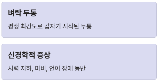 - 두통과 함께 의식 변화, **심한 구토**가 동반되는 경우