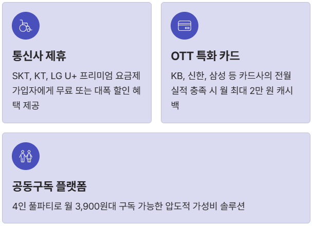 | 통신사 제휴 | 월 9,900원~13,900원 (0원 가능) | 추가 비용 없이 기존 혜택 활용 가능 |