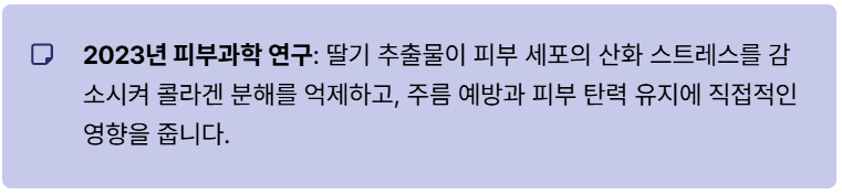 2023년 피부과학 연구에 따르면, 딸기 추출물은 피부 세포의 산화 스트레스를 감소시켜 콜라겐 분해를 억제하는 효과가 있다고 합니다. 즉, **주름 예방**과 **피부 탄력 유지**에 직접적인 영향을 준다는 거죠. 먹는 것만으로도 피부가 건강해지는 놀라운 **딸기 효능**이라고 할 수 있습니다!