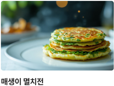 | 전 | 매생이 멸치전 | 멸치의 칼슘 흡수율 극대화 |