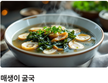 | 국 | 매생이 굴국 | 굴의 콜라겐과 환상 궁합 |