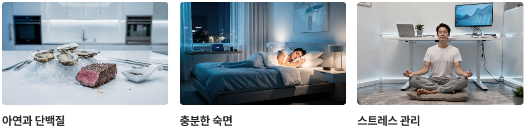 | 필수 영양소 | 아연, 오메가-3, 단백질 | 백혈구 생성 촉진 및 면역 세포 강화 |