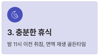 3️⃣ 충분한 휴식: 밤 11시 이전, 꾸준한 수면 패턴의 취침은 면역 세포 재생의 골든타임입니다.