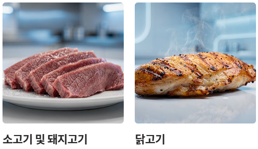 - 닭고기: 소화가 잘 되고 아미노산 구성이 좋아 환자 식단에 필수적입니다.