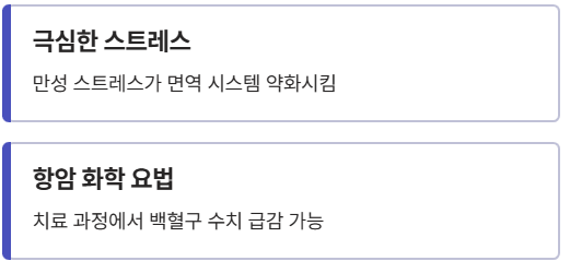 - 상황: 항암 3차 후 백혈구 수치 2,000대로 하락.