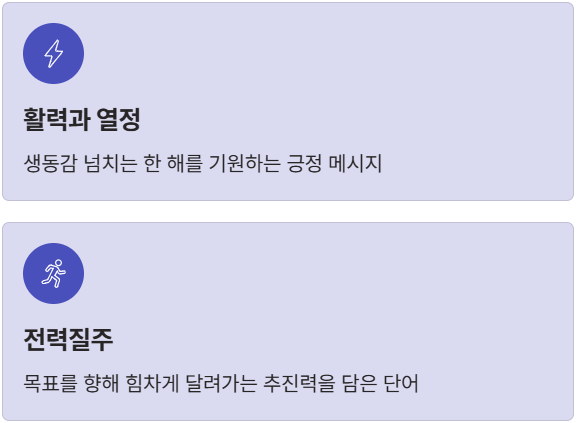 - ▶ 직장 상사/멘토: "단정하면서도 한 해의 좋은 기운을 담은 점이 인상적이었어요. 진심이 느껴졌습니다."