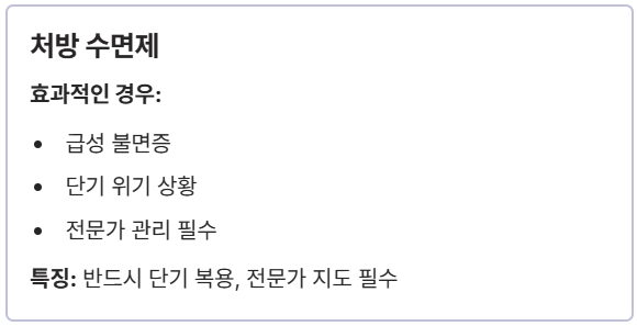 반면, 처방받는 수면제는 잠을 직접적으로 유도하지만, 반드시 단기적으로, 그리고 수면 전문가의 지침 하에 복용해야 합니다. 절대 임의로 복용량을 늘리거나 중단해서는 안 돼요. 목표는 약물 의존도를 줄이고 CBT-I로 대체하는 것입니다.