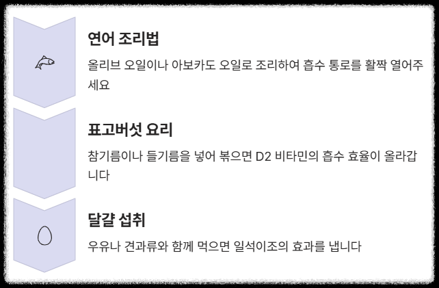 이런 식단만으로도 **비타민D** 부족 현상을 크게 개선할 수 있습니다.