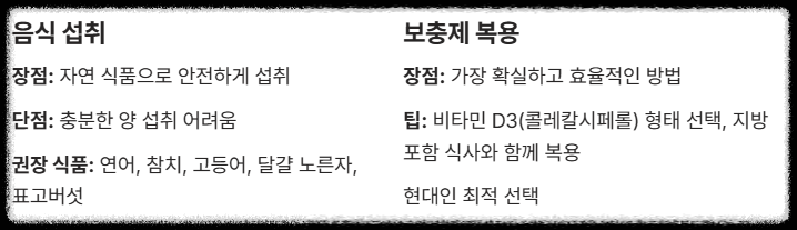 2. 비타민 D 보충 가이드: 햇빛 vs. 음식 vs. 보충제 선택 및 권장량 📝
