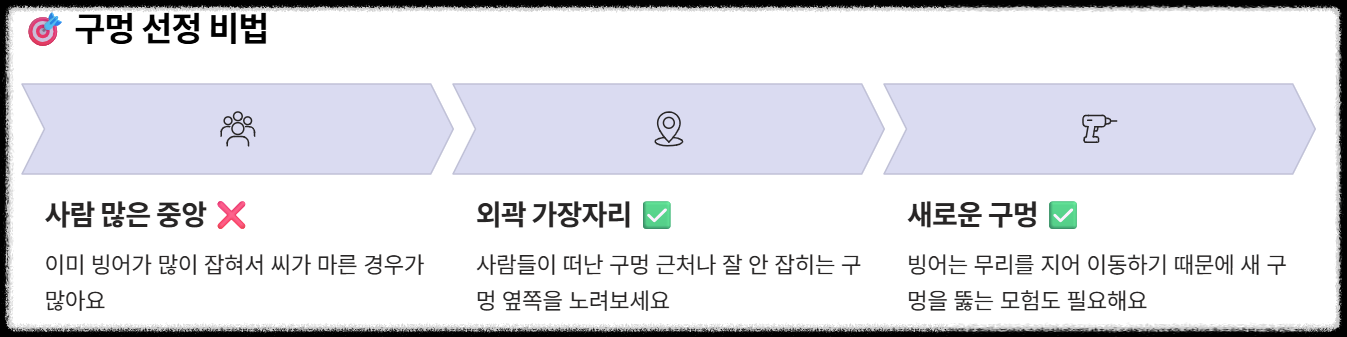 2.2. 낚시 시간대 & 구멍 선정: 경쟁률 낮추고 마릿수 올리는 비법