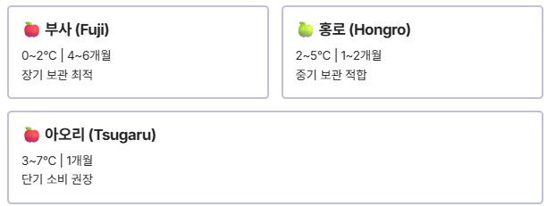 2.2. 부사, 홍로, 아오리... 품종별 최적 온도와 보관 기간