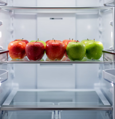 많은 분들이 사과를 봉지에 담지 않은 채 냉장고 문 쪽 포켓에 보관하는데요. 냉장고 문 쪽은 온도가 자주 변해서 사과보관법에 최악의 장소예요. 그리고 수분을 모두 잃어버려서 '쭈글쭈글한 사과'로 변질되죠.