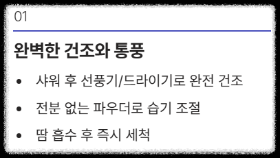 - 청결과 완벽한 통풍/건조가 최우선입니다. (핵심)