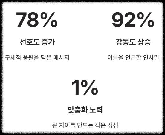 2026년의 인사말 트렌드는 한마디로 '초개인화'입니다. 데이터에 따르면 구체적인 응원을 담은 메시지는 일반 메시지보다 선호도가 78%나 높았고, 상대방의 이름을 언급하는 것만으로도 감동도가 92% 상승한다고 해요.
