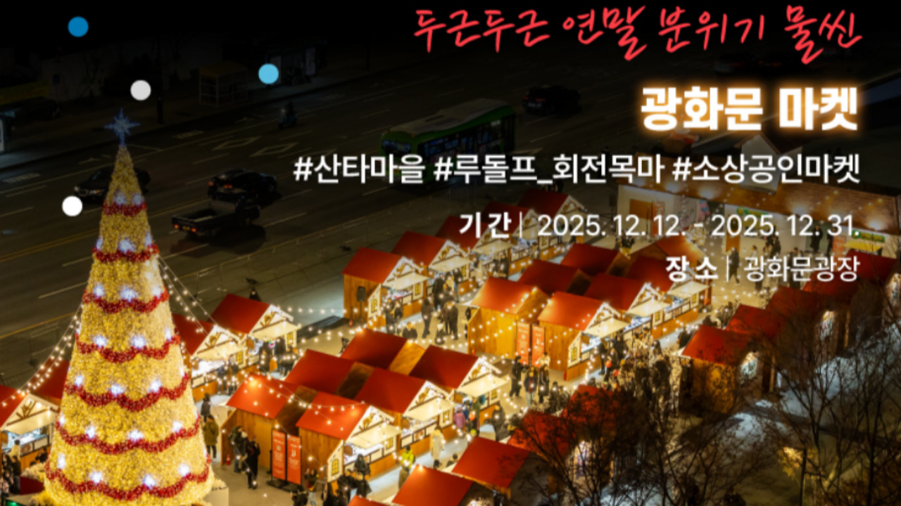 - 5. 광화문 겨울마켓 & 빛놀이도심 한복판에서 따뜻한 겨울 분위기를 만끽하고 싶다면 광화문 겨울마켓이 정답입니다. 광화문광장 일대에는 화려한 LED 조명과 함께 핫한 푸드트럭, 수공예품, 겨울 한정 굿즈가 가득한 마켓이 펼쳐져 가족 단위 관람객들의 쇼핑&인증샷 명소로 급부상할 거예요. 인파가 몰릴 수 있으니 이 코스는 주말 낮 시간대에 여유롭게 계획하는 것을 추천드립니다.