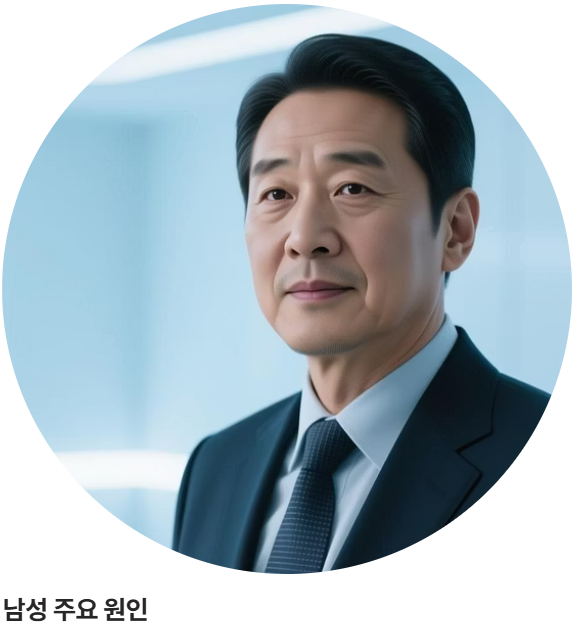 - 남성 주요 원인: 전립선비대증(BPH) - 비대해진 전립선이 요도를 압박하여 소변이 나가는 길을 막습니다. 이 때문에 소변이 잘 안 나올 때 가장 먼저 의심해야 할 질환이죠.