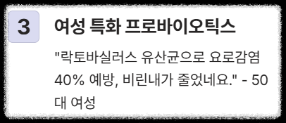 | 3위 | **락토바실러스 프로바이오틱스 집중 섭취** | "2025년 최신 연구처럼, 여성 특화 유산균이 요로감염을 40% 예방한다는 말에 꾸준히 먹으니 비린내와 염증이 줄었네요." (50대 여성 C씨) |
