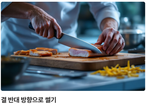 - **썰기:** 고기 결의 **반대 방향**으로 썰어냈습니다.